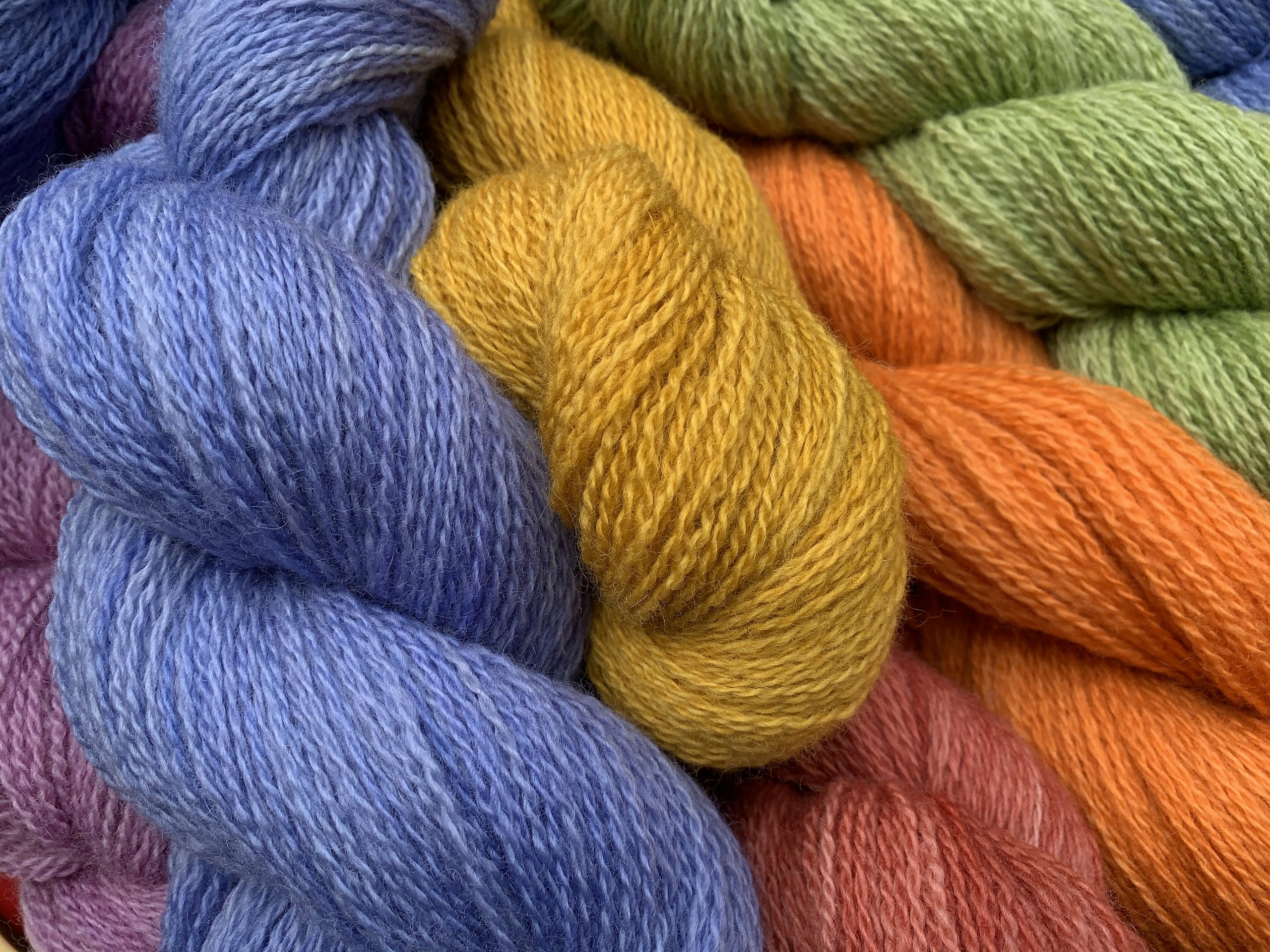 Home-grown, single-farm wool: 100% Shetland from our small flock. We believe that well tended land and happy sheep make superb yarn. Hand-sheared, mill-spun in practical weights in a palette of natural shades and hand-dyed colours which reflect their origins.
