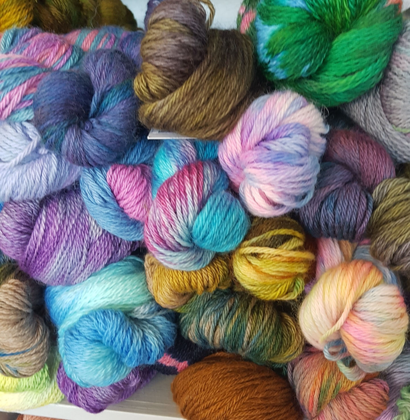You will also see our expanding range of locally produced multicoloured hand dyed yarns, exclusive patterns, knitting and crochet kits and not forgetting the Posh sock range of very popular alpaca hosiery.
