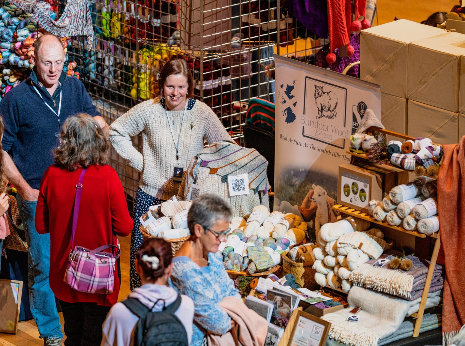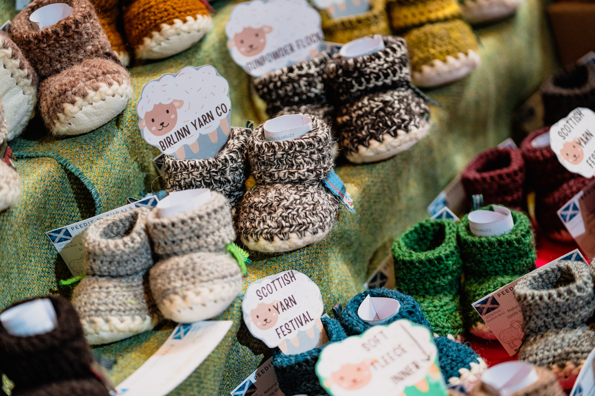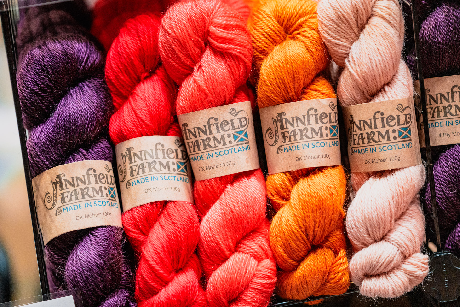 Our own custom yarn will be available at the Scottish Wool Producers Showcase. Slow grown from Scottish provenance Shetland and Cheviot fleece before being worsted spun in Yorkshire, our yarn yields outstanding stitch definition to cables, colour-work, and lace. An abundance of samples from designers we’ve collaborated with and more can be found in our space within this celebration.