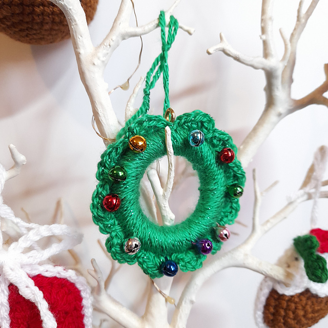 These sweet little crochet decorations by Maddison Overill are perfect for a quick last minute gift and great for using up oddments from your scraps or yarn advents too. Included in the pattern are instructions on how to make a wreath with jingle bells, Christmas pudding, parcel, and bauble.